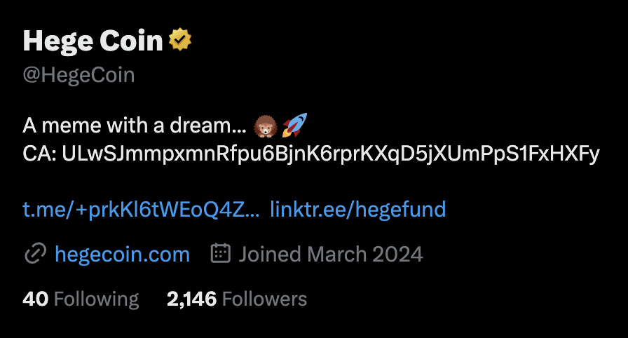The concept for Hege was born when my girlfriend and I were talking about the state of the economy, market manipulation, and hedge funds. The discussion around 'hedge funds' caught my attention - this is where the idea for a hedgehog-themed memecoin was sparked. It aligned with the animal meta and had tons of pun potential, puns that people could get behind to start a movement. Everything about the concept just made sense! As a graphic designer, I started by creating a brand, followed by a website and social channels for $HEGE.
